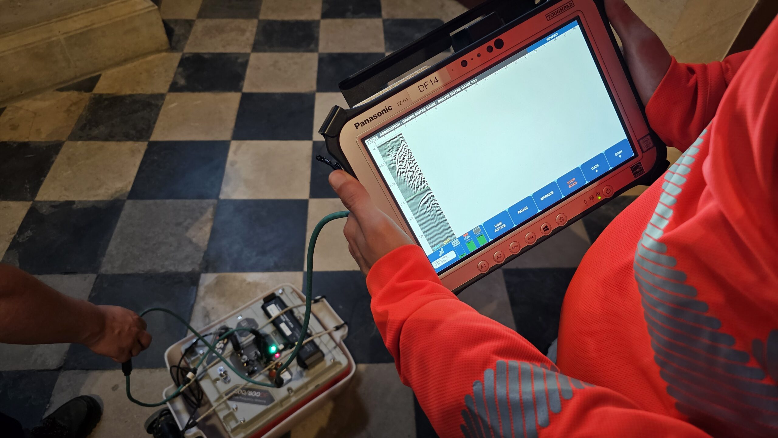 Le géoradar utilise la propagation d’une onde électromagnétique dans le sol afin de localiser un contraste qui se traduit par la présence d’un réseau, d’une structure, ou d’un désordre comme une cavité par exemple.